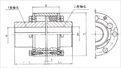 | 型號 | 公稱扭矩 Tn(N.m) | 軸孔直徑d1 d2 d3 | 軸孔長度 | D | B | S | 質(zhì)量m Kg |
